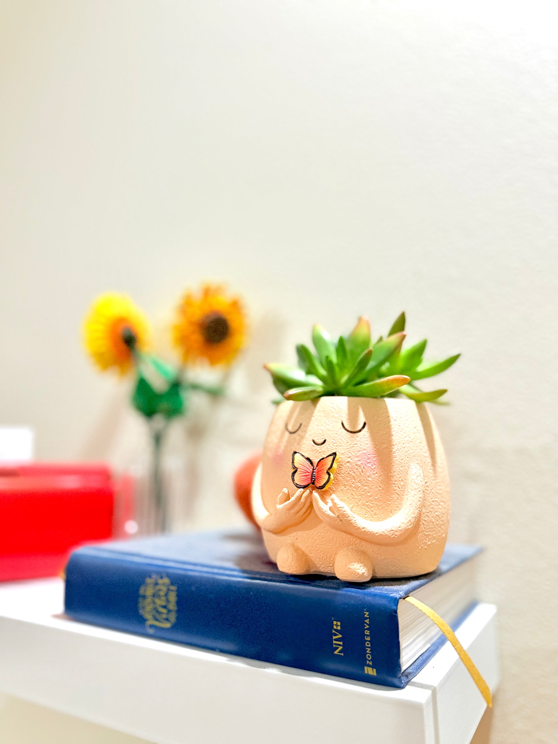 Mrs. Butterfly Flower Pot Head, Cute Flower Pot for Indoor, outdoor Garden Decor.